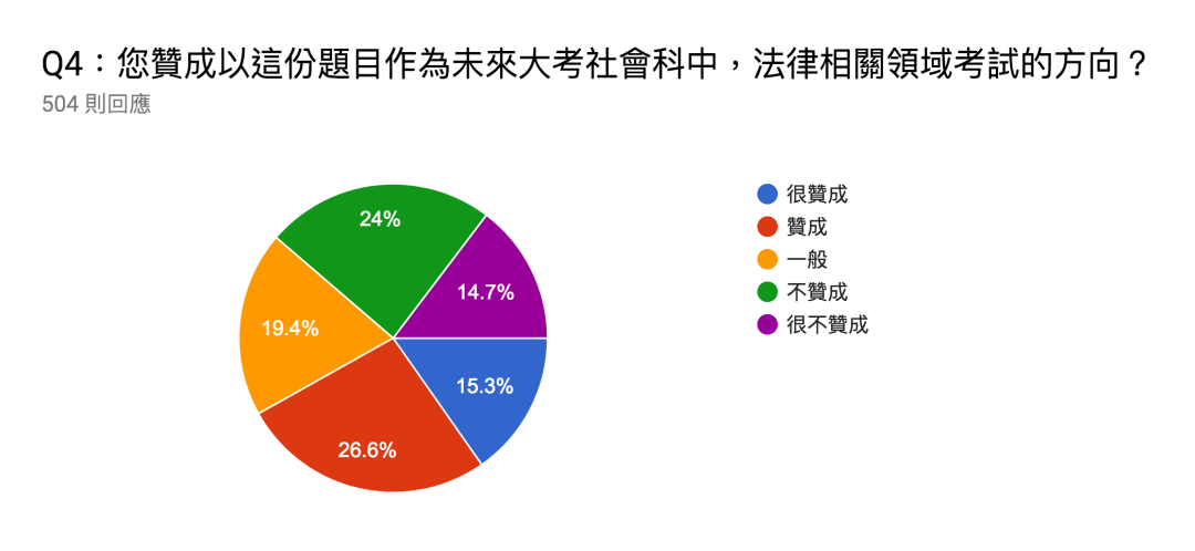 最近,大考中心為了111年大學入學考試研發,釋出了研究試題來看大家的反應,一起讀判決製作了一份問卷,請讀友提供寶貴意見,這份問卷的連結在此,一共收到504份回覆。