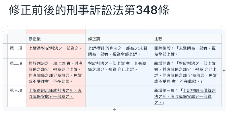 我們先來看一下刑事訴訟法第348條修正前後的法條比較: