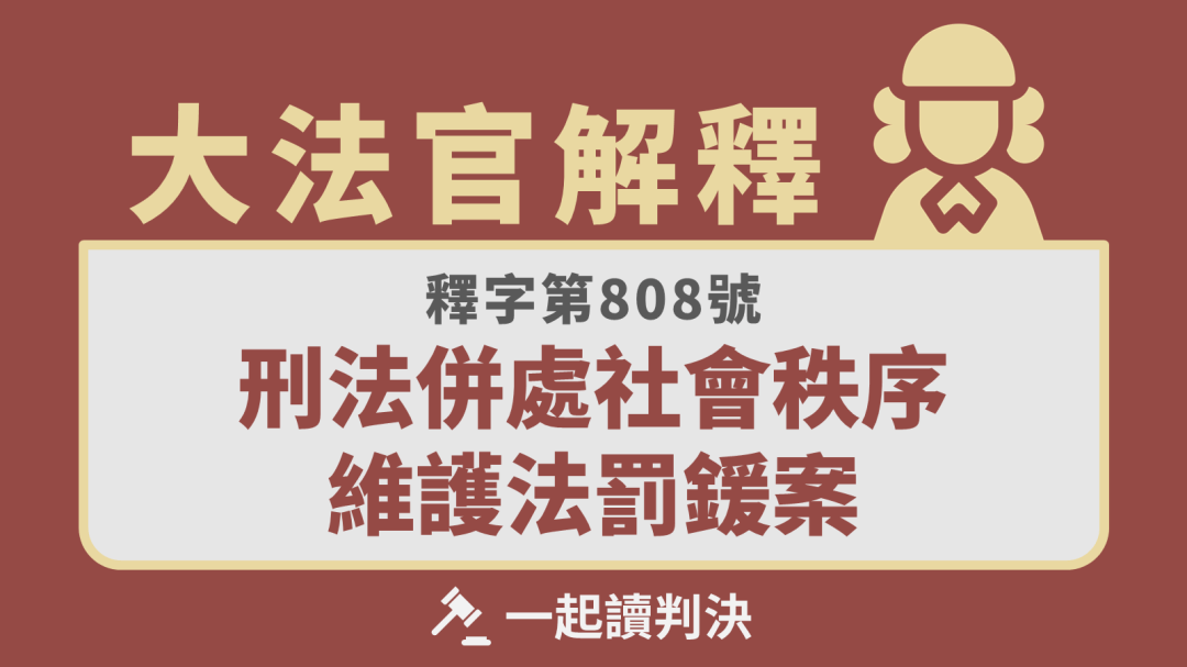 2021年9月10日,大法官作出釋字808號解釋,這是一號違憲解釋,宣告社會秩序維護法第38條但書關於「罰鍰」 … 繼續閱覽 808解釋:刑法併處社會秩序維護法罰鍰案