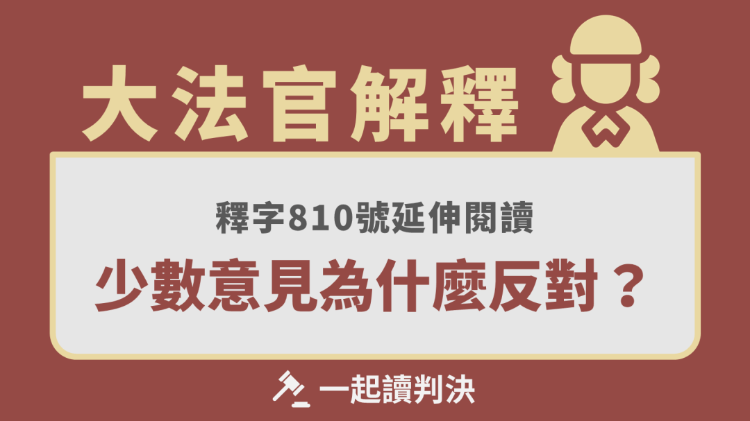 810號解釋有四份不同意見書,蔡明誠、許志雄、黃昭元跟蔡宗珍大法官,四份意見書的意見立場大致上相同。 回顧釋字 … 繼續閱覽 810號解釋的少數意見,為什麼反對?