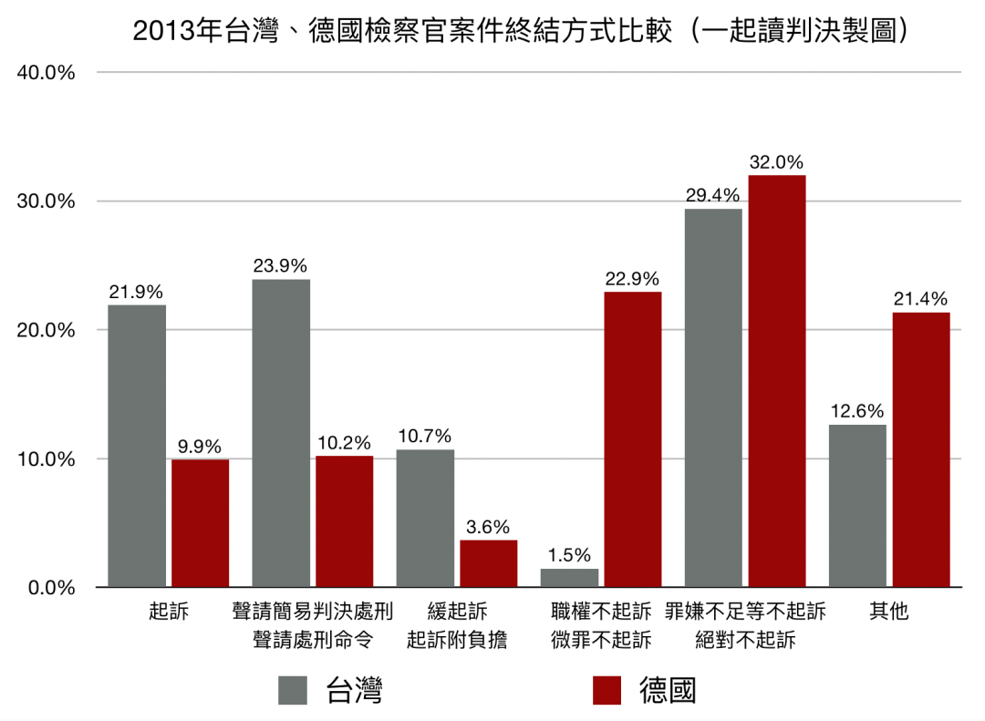 以下以台灣跟德國2013年檢察官結案情形相比較,其中台灣的數據來自法務部統計年報,德國的資料來自一份2015年 … 繼續閱覽 檢察官的結案情形-台灣德國比一比