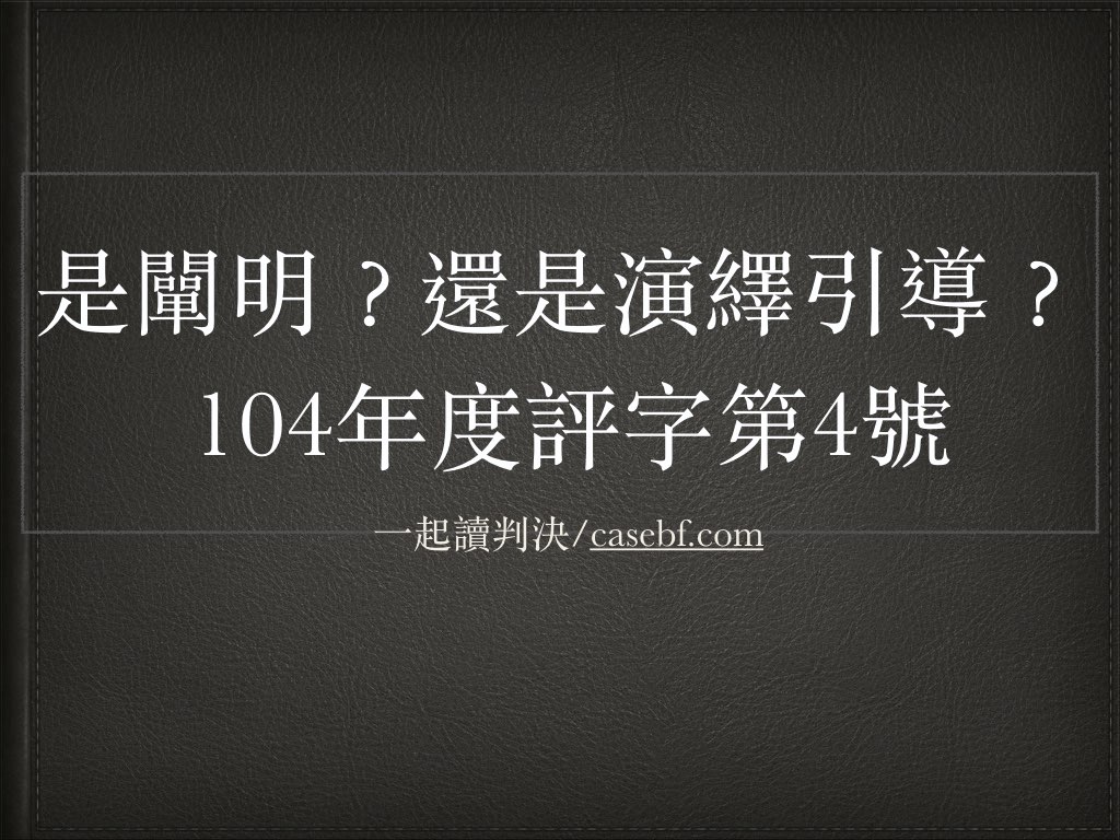 在蘇建和無罪確定後,緊接著是三人的刑事補償程序1,開庭過程衍生出一場司改會將受命法官施俊堯送請評鑑的風波,最後 … 繼續閱覽 是闡明?還是演繹引導?