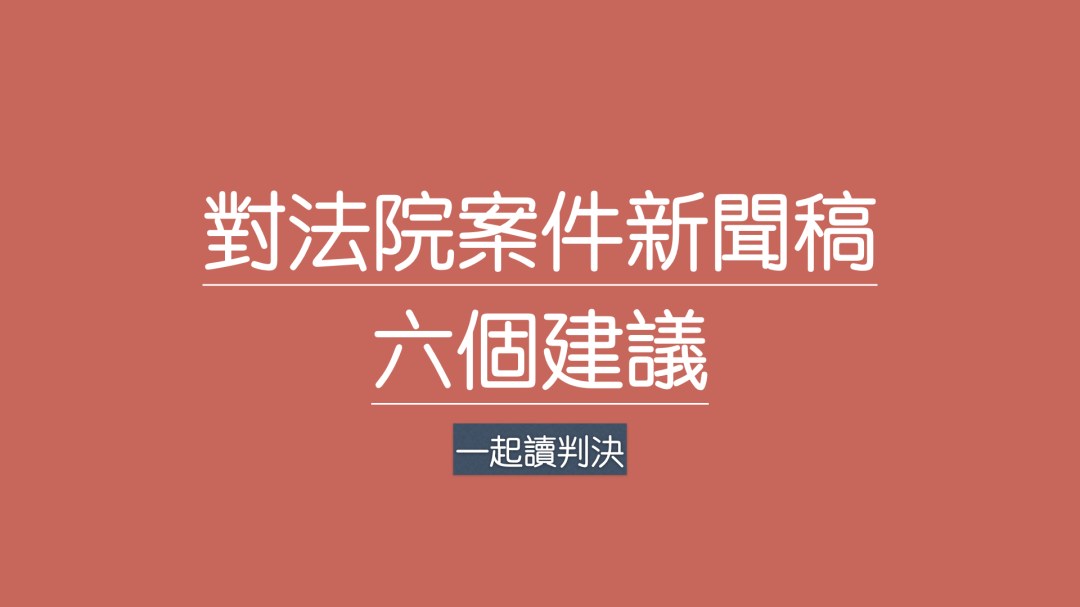 這幾年,各級法院針對重大或矚目案件,多會在宣判後不久,將新聞稿放在司法院的網站上。可能是因為新聞稿來自不同法官 … 繼續閱覽 對法院案件新聞稿的六點建議