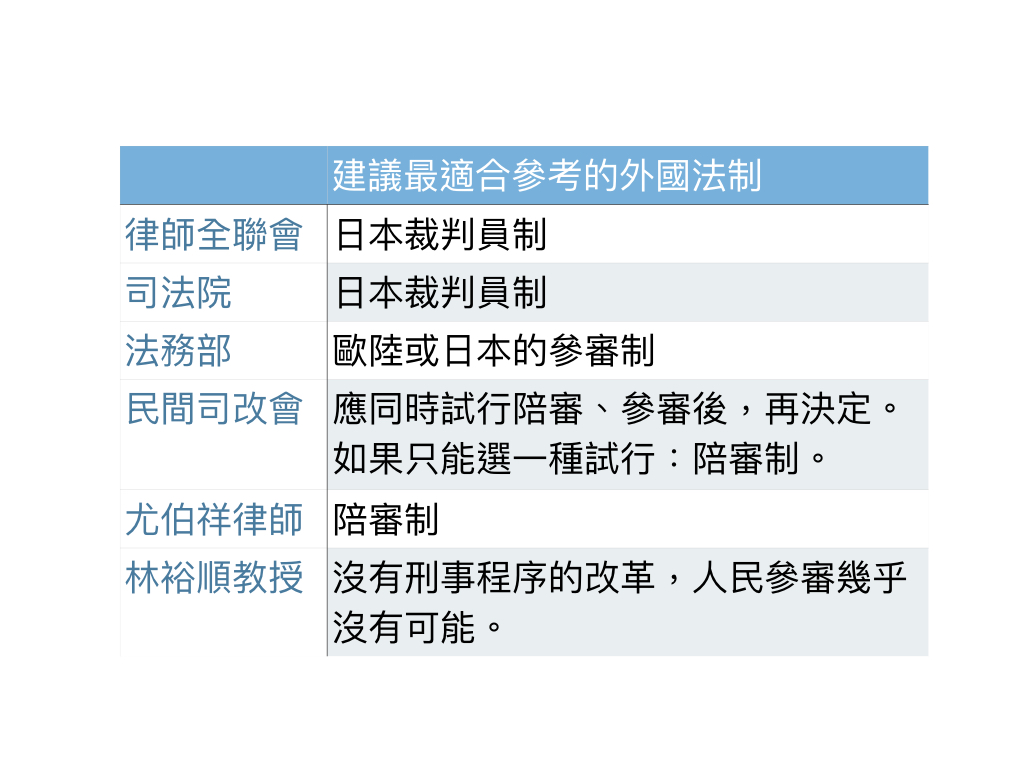 今天下午1:30起,司法改革國是會議第四分組增開一次關於人民參與審判公聽會,並且進行直播,開會之前,分組請受邀 … 繼續閱覽 各方對人民參與審判的主張