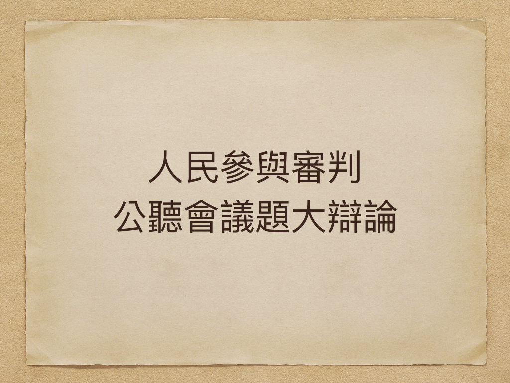 今天下午1:30起,司法改革國是會議第四分組增開一次關於人民參與審判公聽會,並且進行直播,開會之前,分組請受邀 … 繼續閱覽 人民參與審判議題大辯論