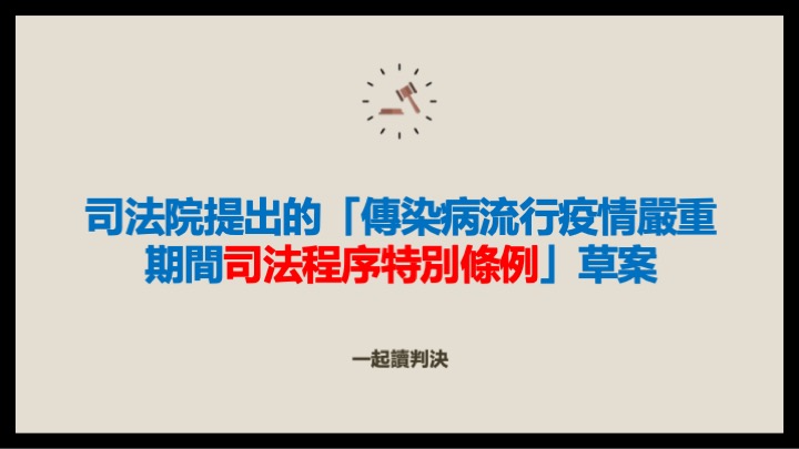司法院推出「傳染病流行疫情嚴重期間司法程序特別條例」草案