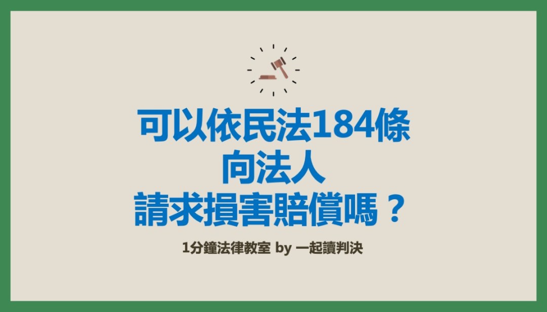 今天,最高法院發布新聞稿表示,民事庭藉由徵詢程序,達成法律問題的統一見解。 民法第184條規定是侵權行為責任的 … 繼續閱覽 可以用民法第184條,來告公司嗎?