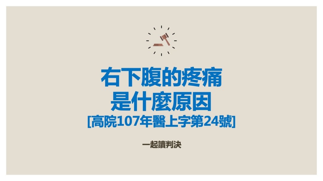 最近一件醫療糾紛的民事案件二審宣判,新竹馬偕醫院跟兩位主治醫師要連帶賠償近2200萬元。這個案子比較特殊之處在 … 繼續閱覽 右下腹的疼痛,是什麼原因?