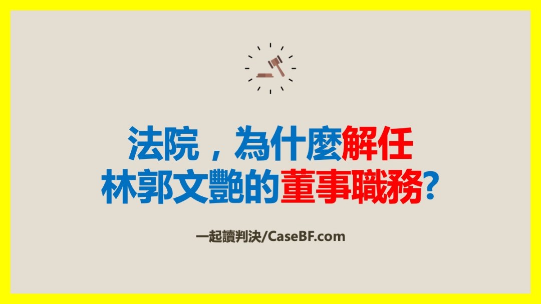 2020年6月30日,大同公司召開股東常會,由董事長林郭文艷擔任主席。林郭文艷禁止兩個部分股份不能行使表決權, … 繼續閱覽 法院,為什麼解任林郭文艷的董事職務?