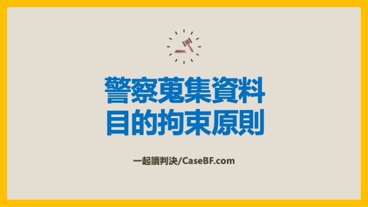 26 五月 2021 一起讀判決 行政,警察法規 警察蒐集資料的目的拘束原則 警察職權行使法第17條規定:「警察對於依本法規定所蒐集資料之利用,應於法令職掌之必要範圍內為之,並須與蒐集之特 … 繼續閱覽 警察蒐集資料的目的拘束原則分享 按一下以分享至 Facebook(在新視窗中開啟) Facebook 按一下即可分享至 X(在新視窗中開啟) X 按一下以分享到 Telegram(在新視窗中開啟) Telegram 喜歡 正在載入...