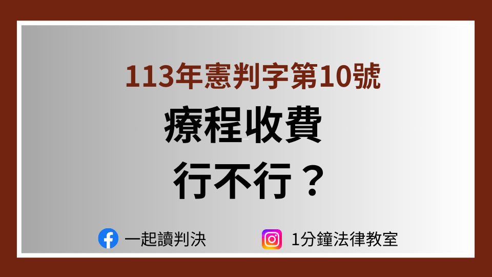 113年10月28日,許宗力等7位大法官卸任前,一連做出2號憲法判決,包括第10號的醫療費用收取標準、第11號 … 繼續閱覽 113年憲判字第10號:療程收費,行不行?