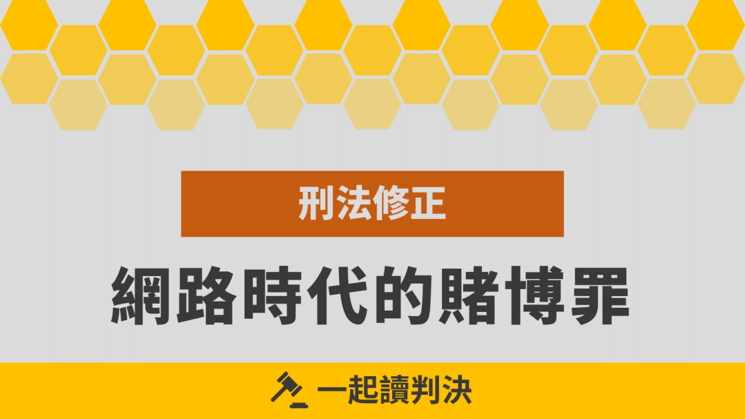 29 十二月 2021 一起讀判決 刑事 刑法修正:網路時代的賭博罪 110年12月28日,立法院三讀通過刑法修正案,其中一個部分是關於網路賭博罪。1️⃣原本賭博的處罰規範刑法對賭 … 繼續閱覽 刑法修正:網路時代的賭博罪分享 按一下以分享至 Facebook(在新視窗中開啟) Facebook 按一下即可分享至 X(在新視窗中開啟) X 按一下以分享到 Telegram(在新視窗中開啟) Telegram 喜歡 正在載入...