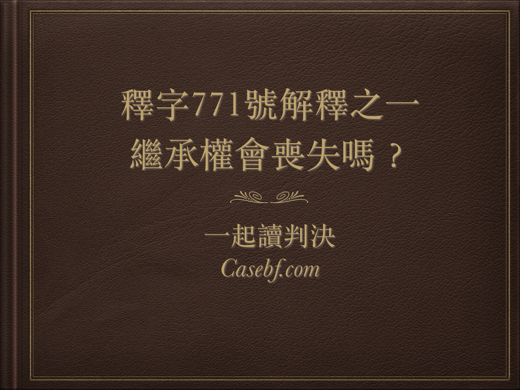 107年12月14日,大法官作成第771號解釋,這次是為了處理民法繼承回復請求權的問題,涉及到的解釋標的包括民 … 繼續閱覽 釋字771號(一):繼承權會喪失嗎?
