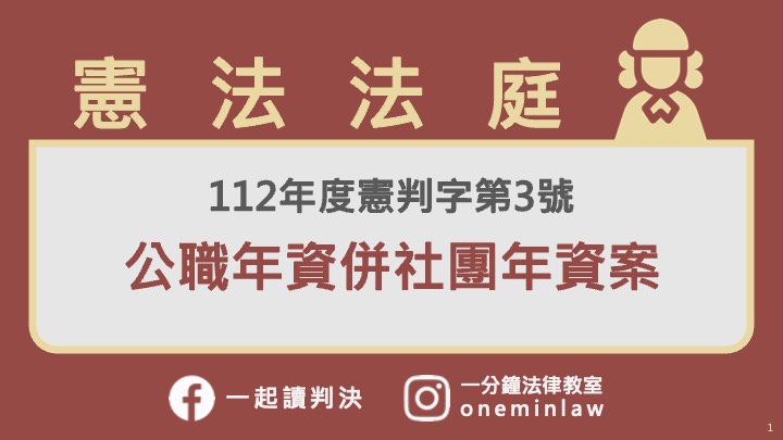 2023年3月17日,憲法法庭做出今年第三號判決,這個判決跟公職人員的年資採計、轉型正義有關,以下簡要介紹這個 … 繼續閱覽 112年憲判字第3號-公職年資併社團年資案