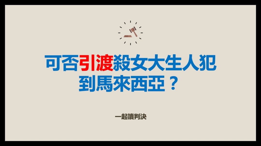 25 十一月 202025 十一月 2020 一起讀判決 刑事 可否引渡殺害女大生的人犯到馬來西亞? 因為馬來西亞女學生命案,被害人家屬的律師提及如不判死,將爭取將被告引渡到馬來西亞。 依照引渡法第1條規定:「引 … 繼續閱覽 可否引渡殺害女大生的人犯到馬來西亞?分享 按一下以分享至 Facebook(在新視窗中開啟) Facebook 按一下即可分享至 X(在新視窗中開啟) X 按一下以分享到 Telegram(在新視窗中開啟) Telegram 喜歡 正在載入...
