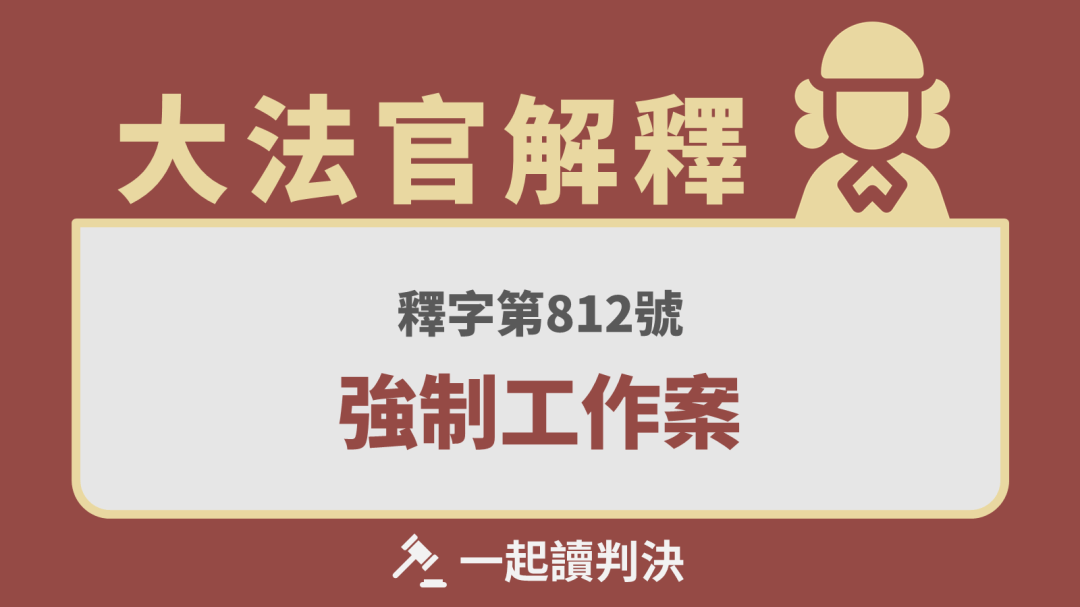 2021年12月10日,在世界人權日這天,大法官作出第812號解釋,宣告「強制工作」違憲。 案件由來 刑法第9 … 繼續閱覽 812號解釋:強制工作釋憲案