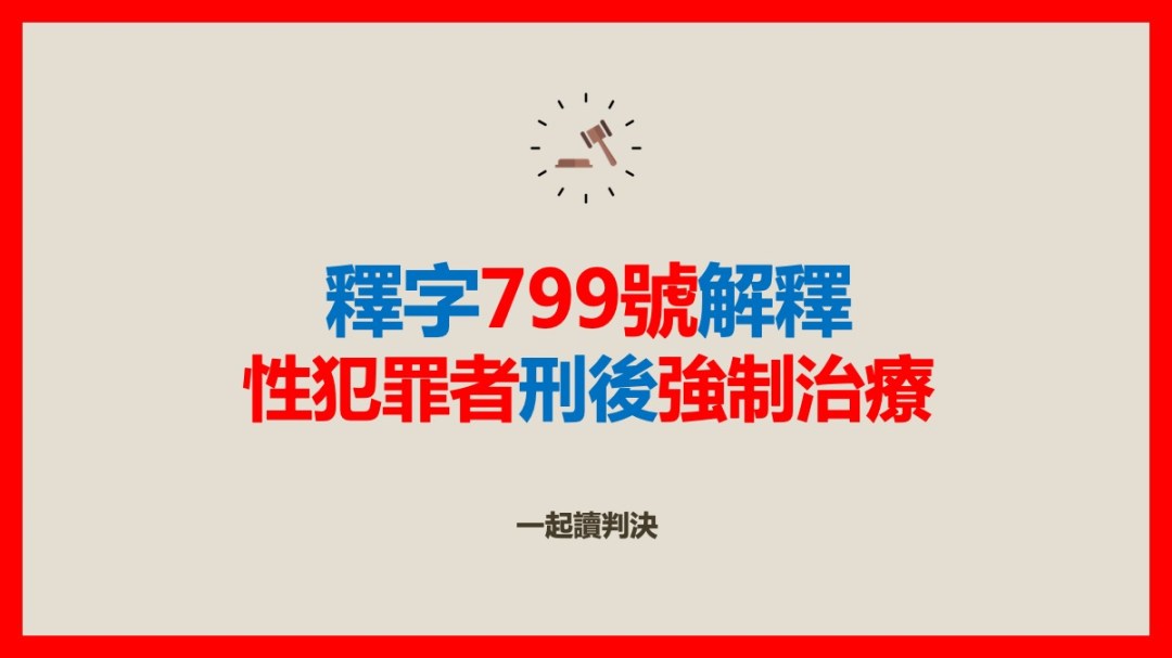 2020年的最後一天,大法官作出最後兩號解釋:798號跟799號。 2020年11月3日,大法官針對刑法第91 … 繼續閱覽 釋字799號解釋:性犯罪者刑後強制治療案