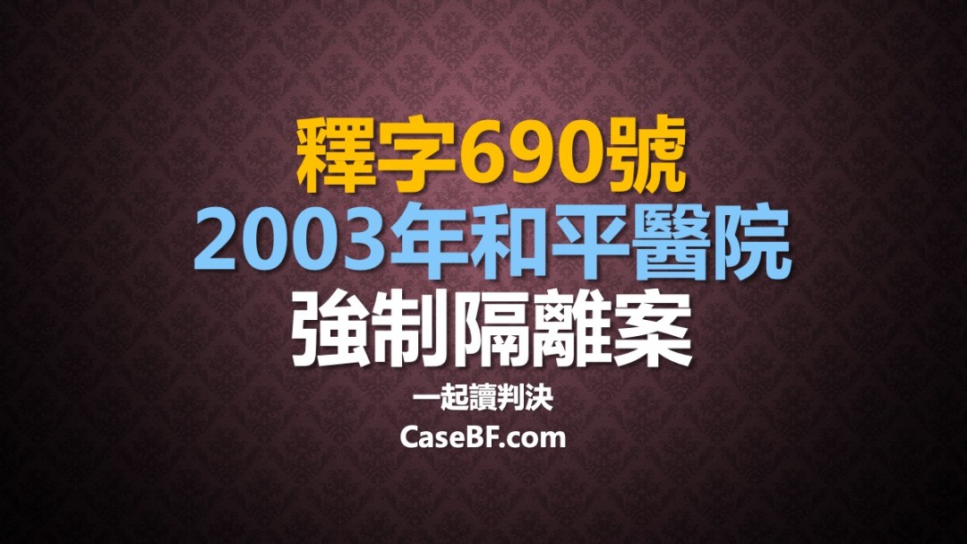 29 一月 202029 一月 2020 一起讀判決 憲法 釋字690號:和平醫院強制隔離釋憲案 最近武漢疫情發燒,讓人回想起2003年的SARS,經歷過的朋友應該還餘悸猶存。2003年4月,和平醫院發生院內集體感染,台北市政府召回院內醫護人員強制隔離,這段過程產生了690號大法官解釋,涉及「非刑事被告」人身自由的限制的合憲性問題。分享 分享到 Facebook(在新視窗中開啟) Facebook 分享到 X(在新視窗中開啟) X 分享到 Telegram(在新視窗中開啟) Telegram 喜歡 正在載入...