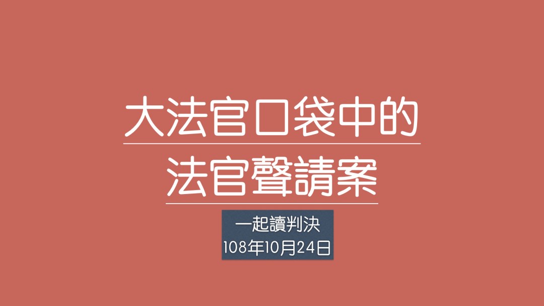 24 十月 201925 十月 2019 一起讀判決 憲法 大法官口袋中的法官聲請案 在大法官就肇事逃逸作出釋字777號解釋,一次清掉16件法官的釋憲聲請案後,待審案件上的排行榜有了一些變動。以下 … 繼續閱覽 大法官口袋中的法官聲請案分享 按一下以分享至 Facebook(在新視窗中開啟) Facebook 按一下即可分享至 X(在新視窗中開啟) X 按一下以分享到 Telegram(在新視窗中開啟) Telegram 喜歡 正在載入...