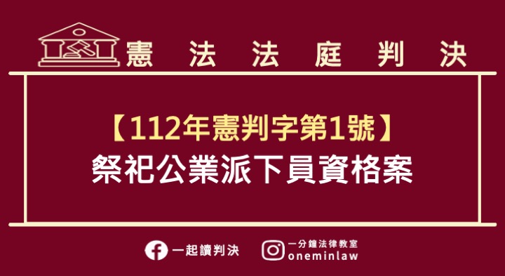 2022年10月18日,憲法法庭針對祭祀公業條例進行言詞辯論,隔年1月13日做出憲法判決,是一個單純違憲宣告的 … 繼續閱覽 112憲判1:祭祀公業派下員資格案