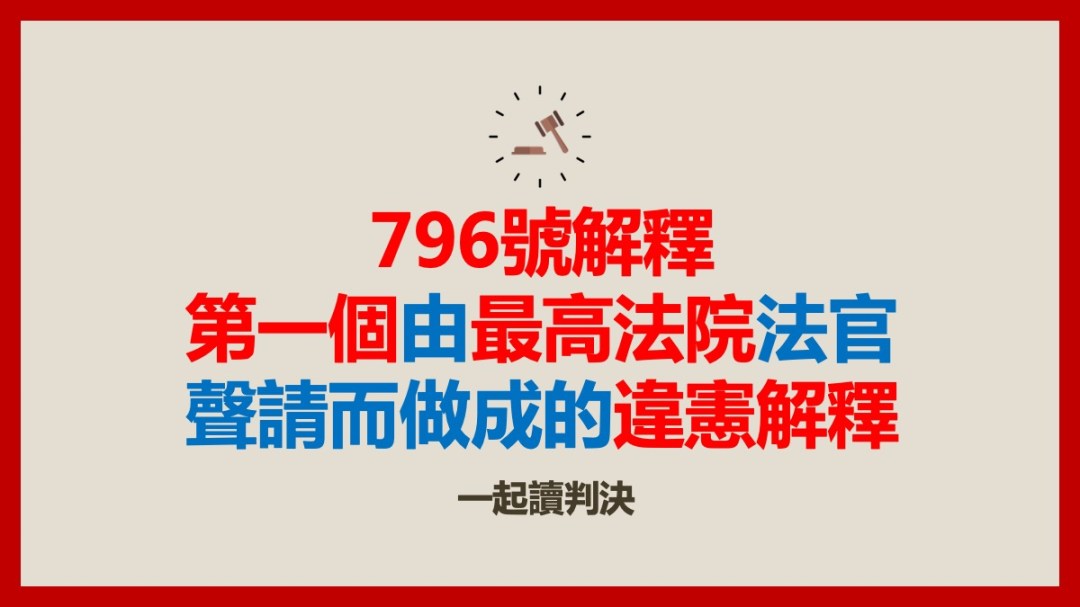 796號解釋:第一個由最高法院法官聲請而做成的違憲解釋