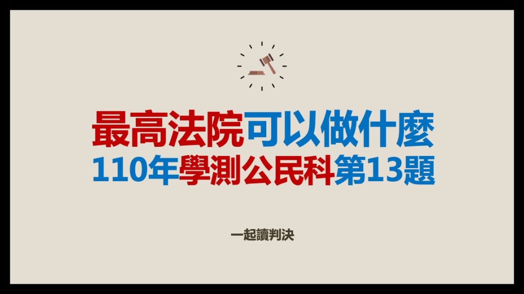 今年的學測公民科,出了一個題組,想了好一陣子,才選出答案,這個題目蠻適合用來了解最高法院的角色。 題目是這樣的 … 繼續閱覽 最高法院可以做什麼?