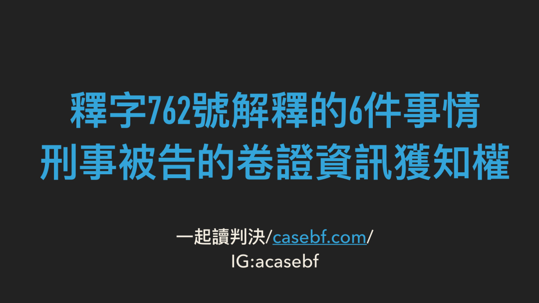 一、卷證資訊獲知權 解釋理由認為訴訟權是為了確保人民受公平審判權利,依照正當法律程序,刑事被告應該享有充分的防 … 繼續閱覽 關於762號解釋的六件事