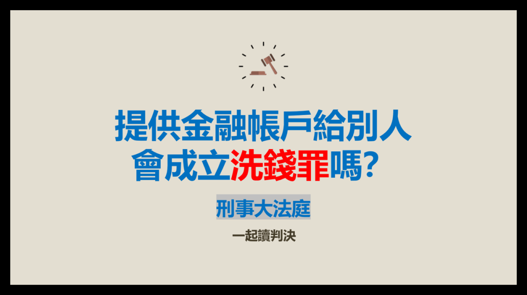 提供金融帳戶給別人,會成立洗錢罪嗎?