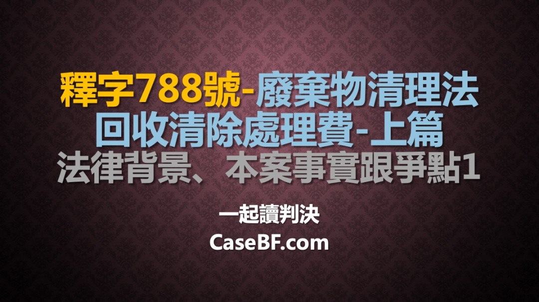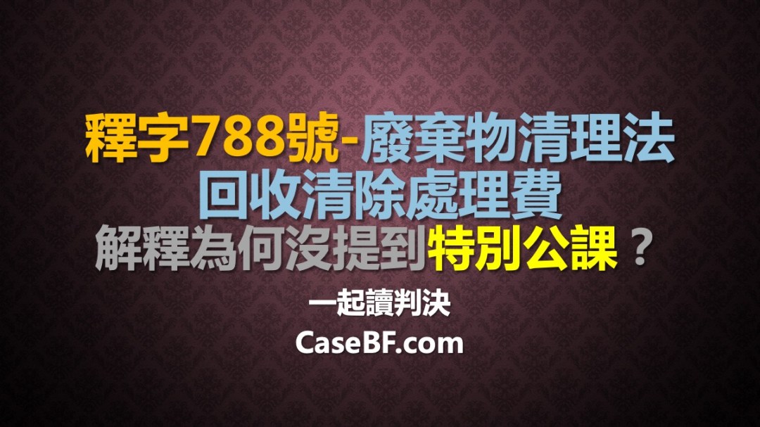 788號解釋:廢棄物清理法的回收清除處理費-上篇