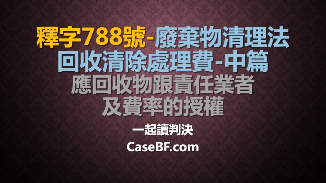 788號解釋:廢棄物清理法的回收清除處理費-中篇