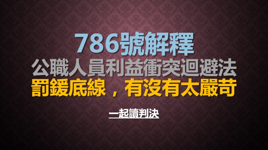 15 十二月 201915 十二月 2019 一起讀判決 憲法 786號解釋:利益衝突迴避法的罰鍰底線,有沒有太嚴苛? 108年12月13日,大法官作出今年的第13號解釋:第786號。這號解釋處理的問題是:修正前的公職人員利益衝突迴避法就違反該法規定,罰鍰就由100萬元起跳,有沒有太過嚴苛,而違反責罰相當原則。分享 按一下以分享至 Facebook(在新視窗中開啟) Facebook 按一下即可分享至 X(在新視窗中開啟) X 按一下以分享到 Telegram(在新視窗中開啟) Telegram 喜歡 正在載入...